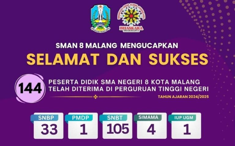 Puji syukur ke hadirat Tuhan Yang Maha Esa atas segala rahmat dan karunia-Nya sehingga website resmi SMA Negeri 8 Malang dapat hadir sebagai media informasi dan komunikasi bagi seluruh warga sekolah serta masyarakat luas.