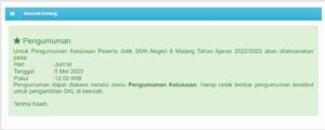 5 Mei 2023, Pengumuman kelulusan disampaikan secara online menggunakan platform masterweb SMAN 8