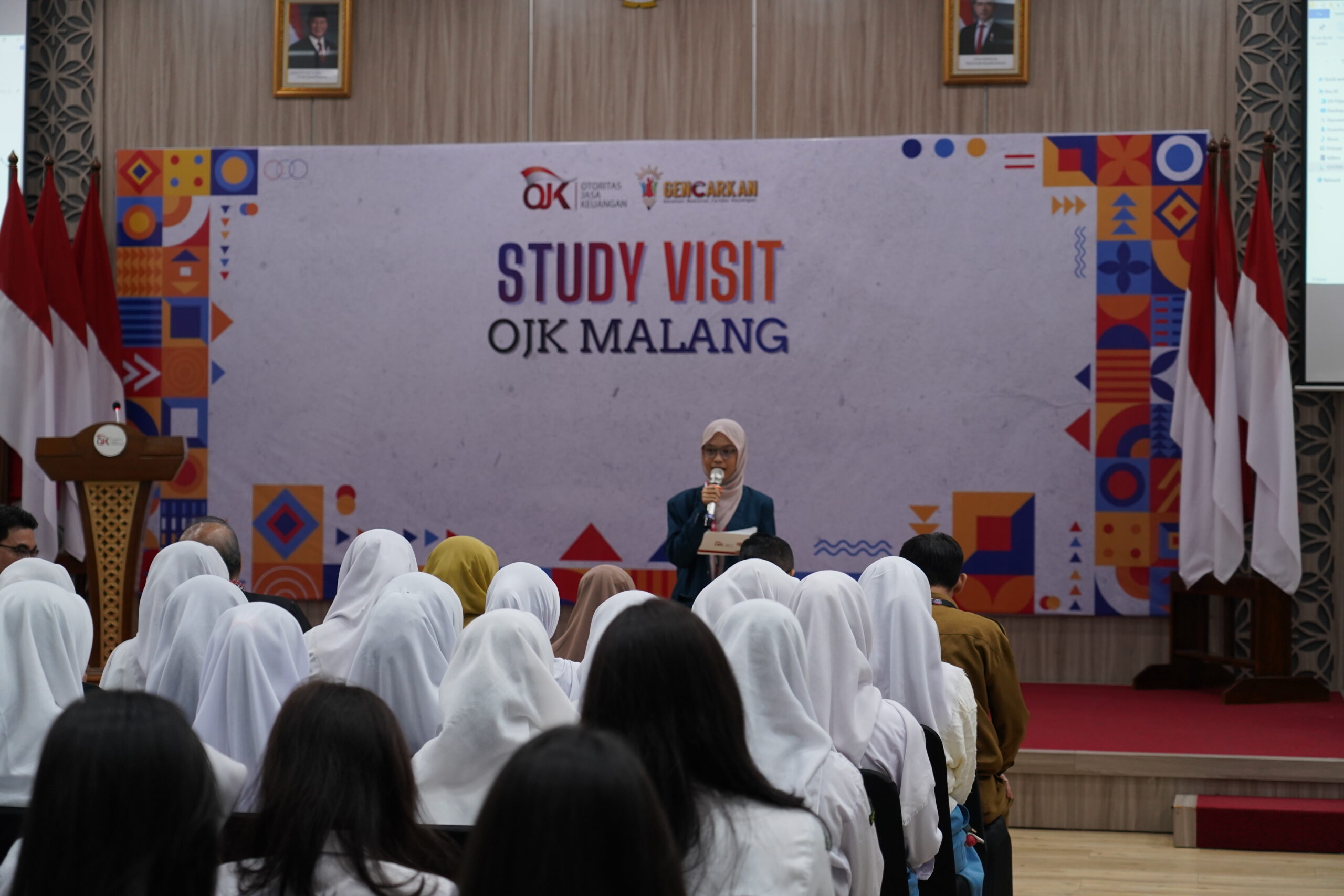 Acara diawali dengan sambutan dari Kepala OJK Malang, Farid Faletehan. Dalam sambutannya, beliau menyampaikan apresiasi atas kunjungan siswa SMAN 8 Malang serta menegaskan pentingnya pemahaman mengenai sistem keuangan sejak usia sekolah. Ia menjelaskan bahwa OJK memiliki peran strategis dalam menjaga stabilitas sistem keuangan nasional agar tetap sehat, transparan, dan melindungi kepentingan masyarakat sebagai konsumen jasa keuangan.