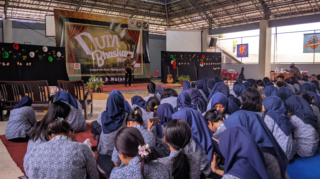 Seleksi Duta Bhaskara merupakan agenda tahunan sekolah yang bertujuan untuk memilih duta pelajar yang tidak hanya berprestasi secara akademik, tetapi juga memiliki karakter unggul, kemampuan komunikasi yang baik, wawasan luas, serta jiwa kepemimpinan. Para finalis diharapkan mampu menjadi representasi positif SMAN 8 Malang dalam berbagai kegiatan, baik di tingkat internal maupun eksternal sekolah.
