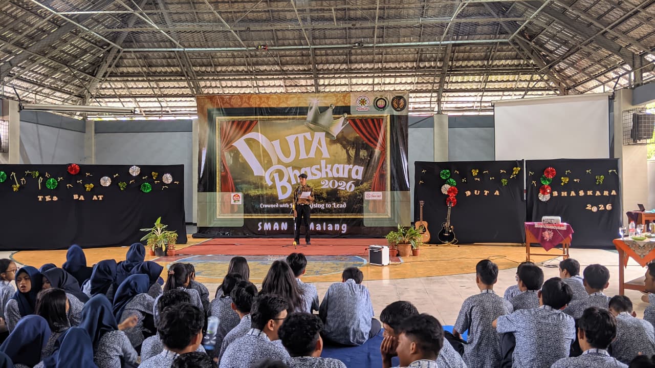 Malang – SMA Negeri 8 Malang kembali menyelenggarakan kegiatan Seleksi Duta Bhaskara Tahun 2026 pada Kamis, 12 Februari 2026. Kegiatan yang berlangsung di Aula Indoor SMAN 8 Malang ini diikuti oleh para siswa-siswi terbaik yang telah melalui tahap pendaftaran dan seleksi administrasi sebelumnya.