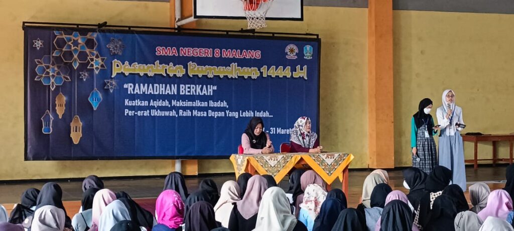 Memasuki Bulan Ramadhan, siswa SMAN 8 Malang disambut dengan kegiatan Pesantren Ramadhan. Kegiatan ini berlangsung selama 5 hari yaitu pada tanggal 27 – 31 Maret 2023. Dalam kegiatan ini siswa akan mendapatkan berbagai materi dan juga kegiatan guna meningkatkan keimanan kepada Allah SWT. Pada hari senin dan selasa kegiatan difokuskan untuk siswa putra, sedangkan pada hari rabu dan kamis untuk siswa putri.